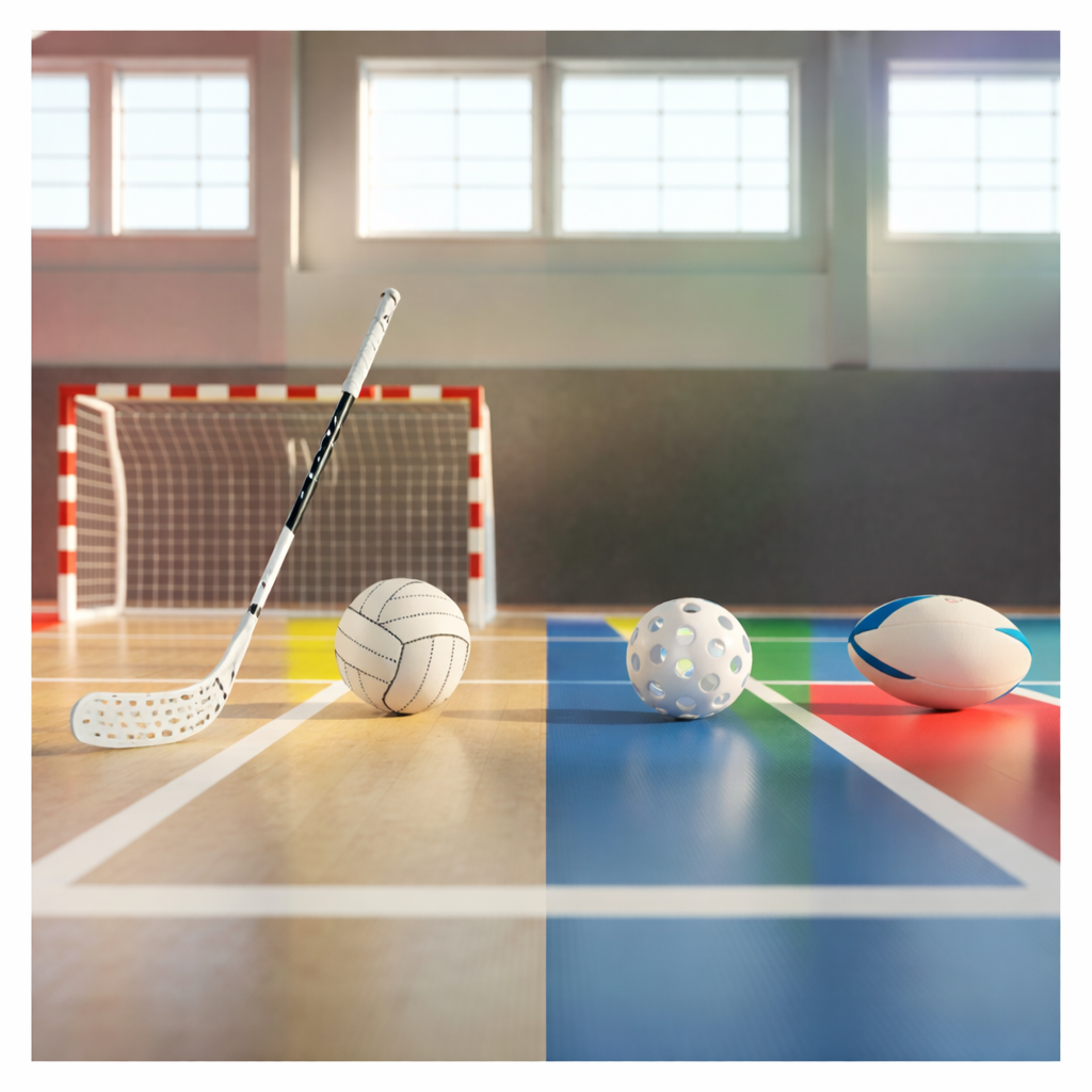 Un jeu multimodal avec ballon de volley, balle d'unihockey et ballon de rugby. Une discipline unique, accessible et intense. Inventé par Yanik et Elaine.